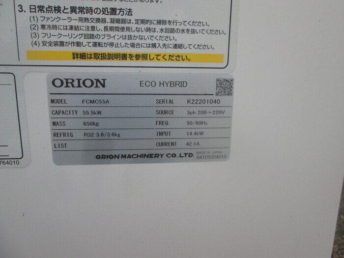 工場設備関係 チラー・冷却塔・周辺機器 チラー チラー(空冷) メーカーオリオン機械 型式FCMC55A 年式2022.2 外寸W1650 D1020 H2500 展示場九州テクニカルセンター 価格1,540,000円(税込) ASK管理No.P31065 在庫確認・お問合せ 機械仕様・電源:φ3 200V~220V 50/60Hz ・冷却能力:55.5kW ・使用液温度範囲:15~35℃ ・温度制御精度:±0.5℃ ・タイプ:循環ポンプレス ・防振台付き(倉敷化工/B-1021-0421) 添付ファイル 動作チェックシート ※ 以下の画像をクリックをすると拡大します