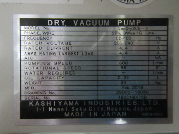 ドライポンプ:カシヤマNeoDry36E-3