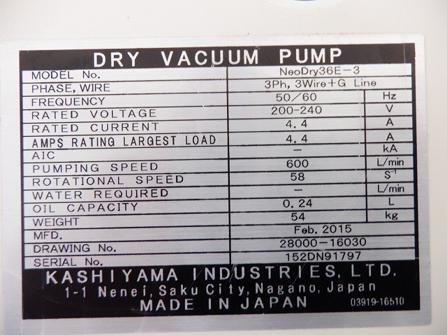 機械仕様・電源:3P 200V