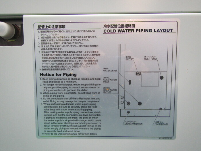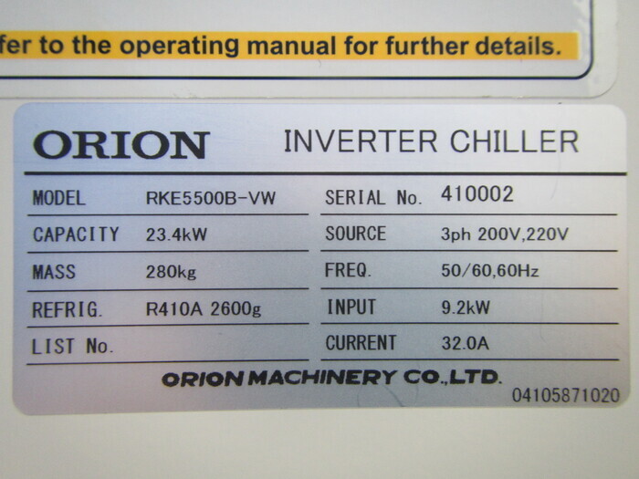 工場設備関係 チラー・冷却塔・周辺機器 チラー チラー(水冷) メーカーオリオン機械 型式RKE5500B-VW 年式 外寸W1230 D1010 H1960 展示場塩山テクニカルセンター 価格売却済 ASK管理No.P90044 在庫確認・お問合せ 機械仕様冷却能力:23.4kW 電源:三相 200V 220V 50/60Hz 60Hz 9.2kW 32.0A 冷媒:R410A(2600g) 添付ファイル 動作チェックシート ※ 以下の画像をクリックをすると拡大します