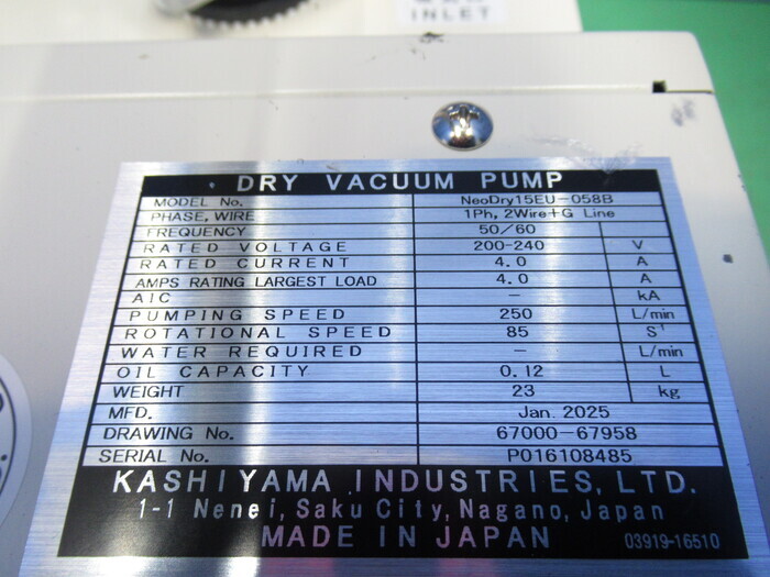 機械仕様排気速度:250L/min