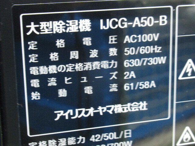 機械仕様定格除湿能力:42L/日(50Hz)、50L/日(60Hz)