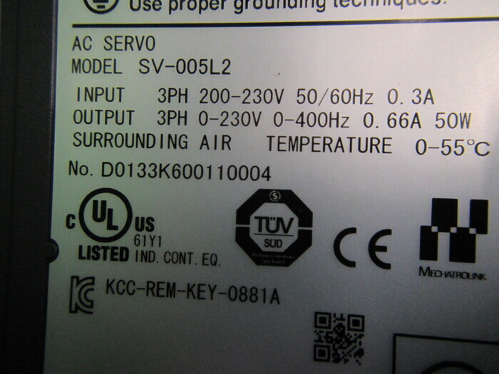 機械仕様INPUT:3PHAC200-230V 50/60Hz 0.3A