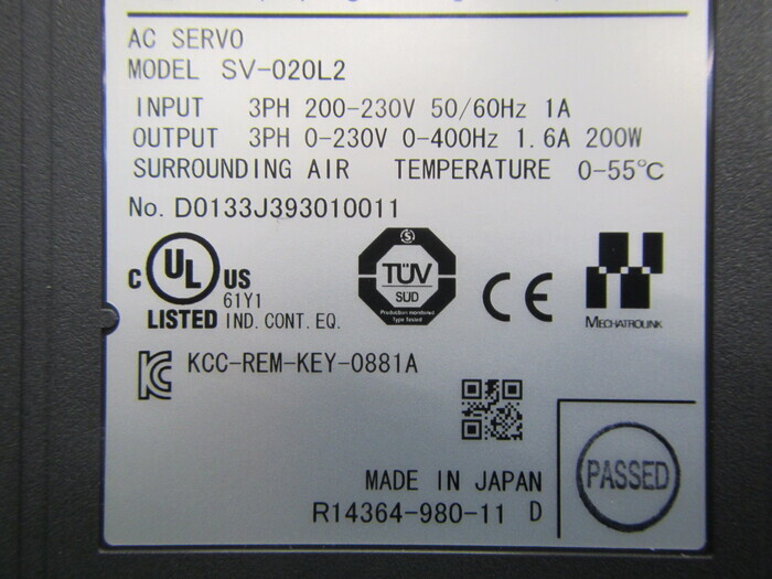 機械仕様INPUT:3PHAC200-230V 50/60Hz 1A