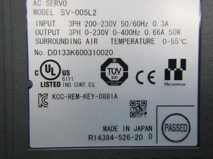 機械仕様INPUT:3PHAC200-230V 50/60Hz 0.3A