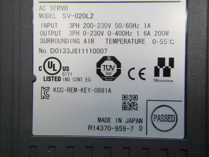 機械仕様INPUT:3PHAC200-230V 50/60Hz 1A