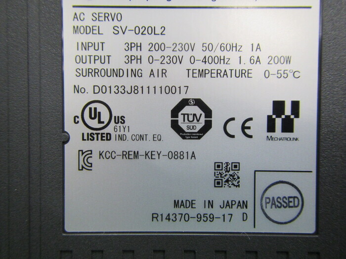 機械仕様INPUT:3PHAC200-230V 50/60Hz 1A