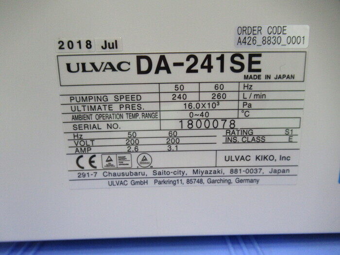 機械仕様到達真空度:16.0kPa