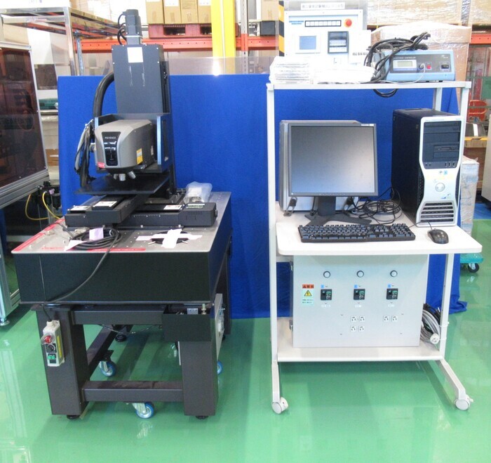 除振台、自動ステージ(SGSP46-300)、コントローラー(VK-9700)、ステージコントローラー(SHOT-202)、PCセット、パソコンラック付属