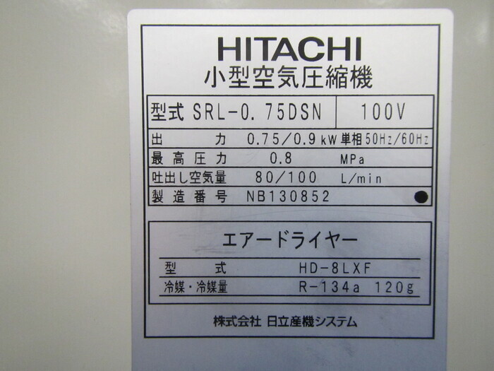 機械仕様吐出空気量:80/100L/min