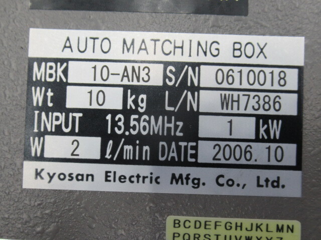 機械仕様INPUT 13.56MHz 1Kw water1l/min