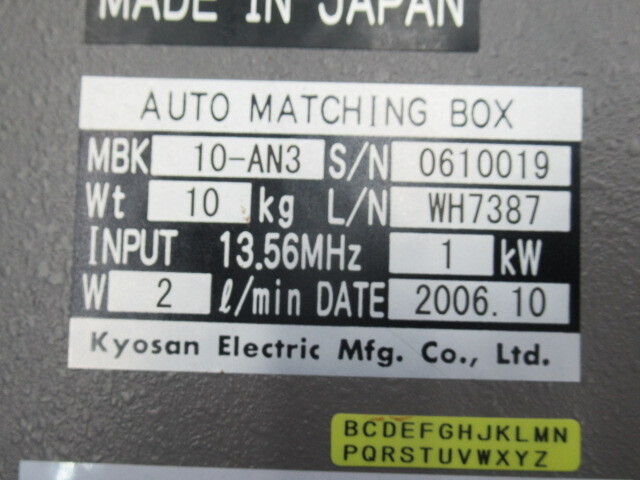 機械仕様INPUT 13.56MHz 1Kw water1l/min