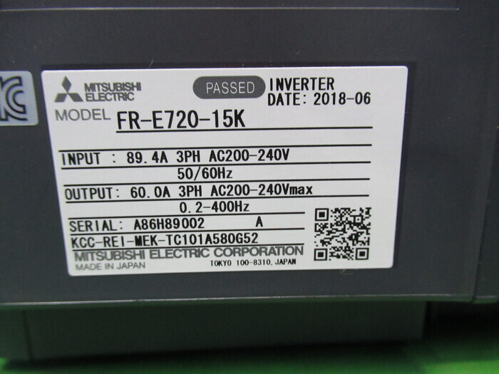 出力:3PH AC200-240V MAX 0.2-400Hz 60.0A